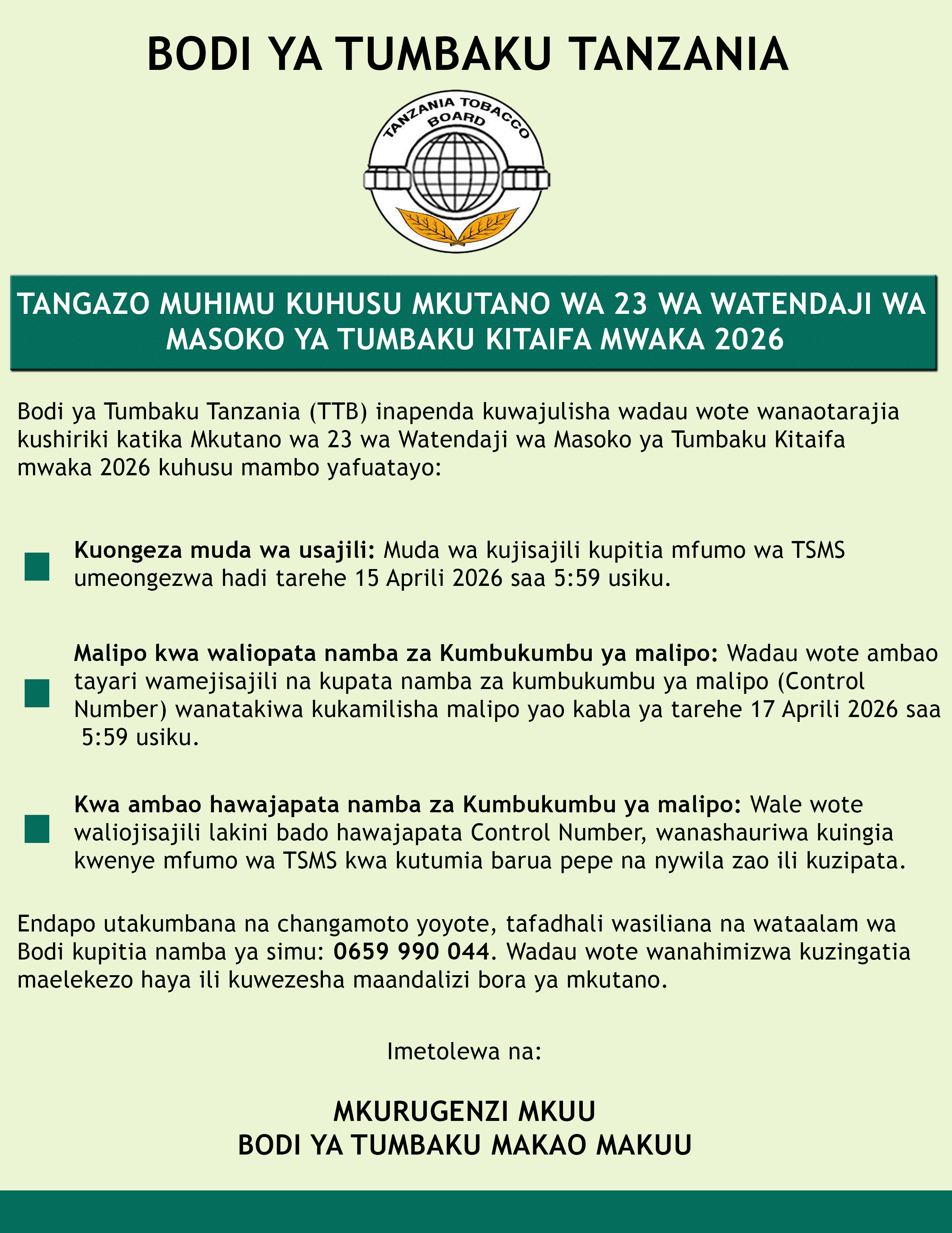 Tangazo muhimu kuhusu mkutano wa 23 wa Watendaji wa masoko ya tumbaku kitaifa mwaka 2026